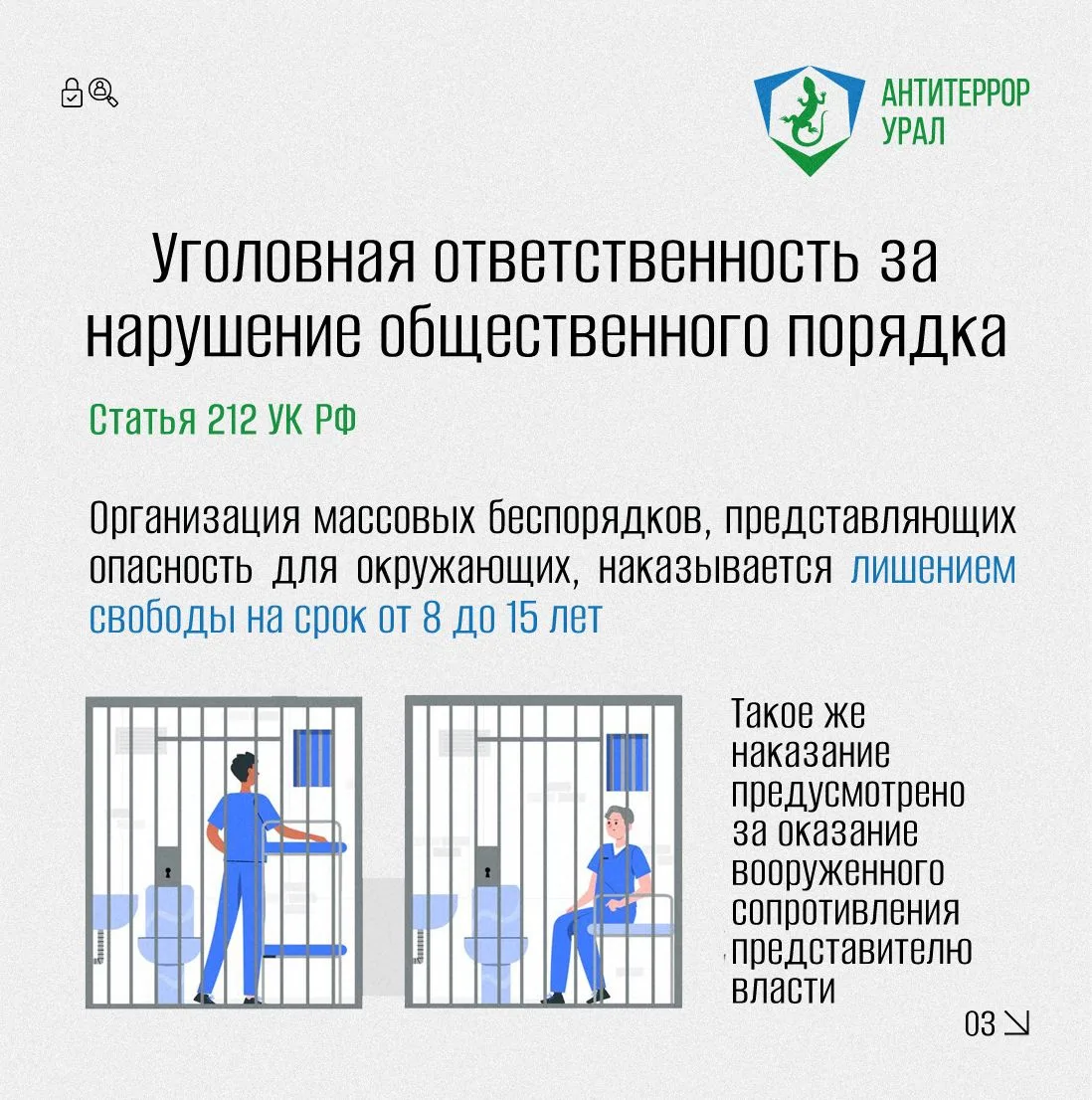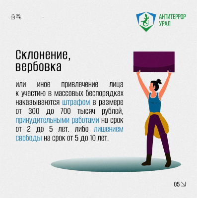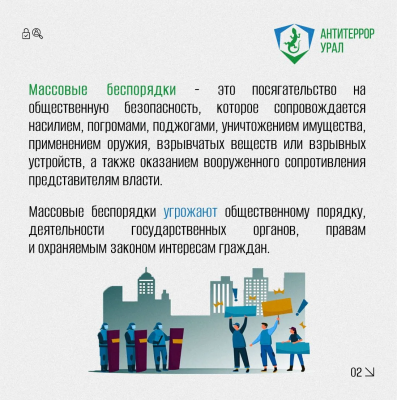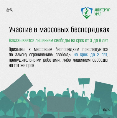Мы подготовили информационные карточки, в которых подробно рассказывается о предусмотренной ответственности за участие в массовых беспорядках.